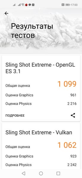 | 3DMark Sling Shot Ex Vulkan (больше — лучше) | 1062 | 1075 | 1982 | 1039 |