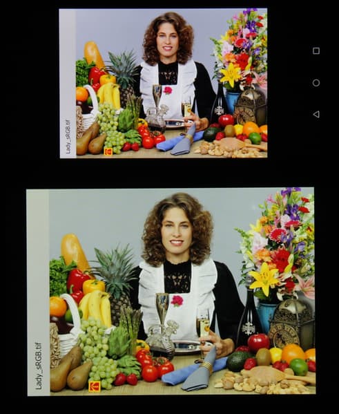 В итоге визуально цвета на этом экране не отличались бы от естественных, но результат слегка портит небольшое завышение цветового контраста.