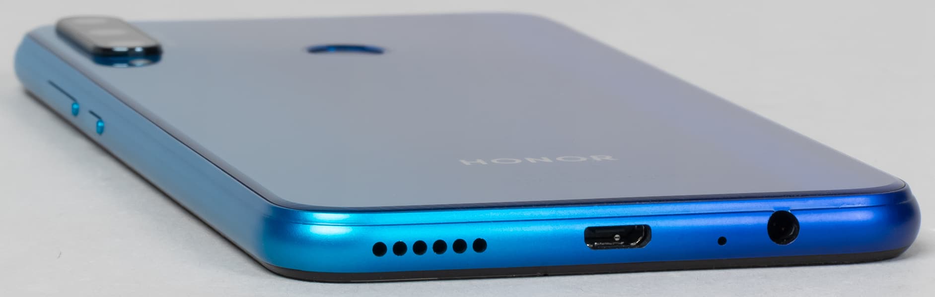 На верхнем торце корпуса нет ничего, кроме микрофона. В нижнем торце установлены разъем Micro-USB, а также динамик, микрофон и 3,5-миллиметровый аудиовыход. Таким образом, у аппарата два микрофона, а значит, в наличии система шумоподавления. Что касается разъема Micro-USB, то очень хочется, чтобы он уже ушел в прошлое и не встречался в новых моделях. Доходит до смешного: производители аргументируют использование Micro-USB тем, что у покупателей бюджетных смартфонов нет денег на новый набор кабелей с разъемами USB Type-C. Но кабели эти в 2020 году ничем, разумеется, не отличаются по цене от кабелей с разъемами Micro-USB, да и сколько там их нужно? Так что пора отбросить дурацкие игры в сегментирование рынка и оседлать прогресс.