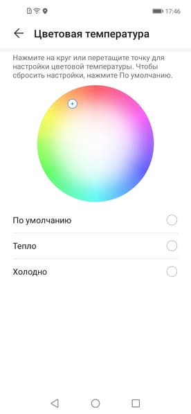В этом устройстве есть возможность скорректировать цветовой баланс с помощью регулировки оттенка на цветовом круге или просто выбором одного из трех предустановленных профилей.