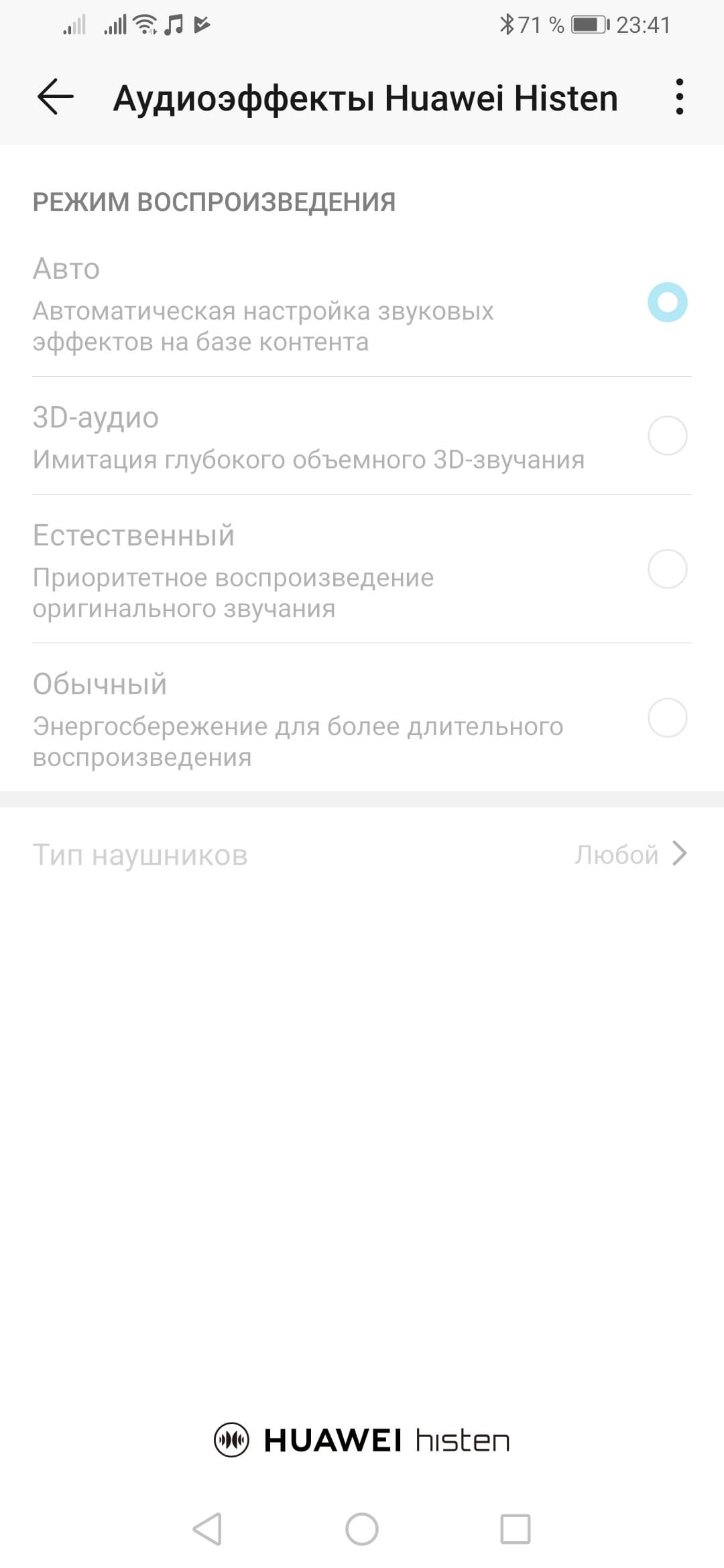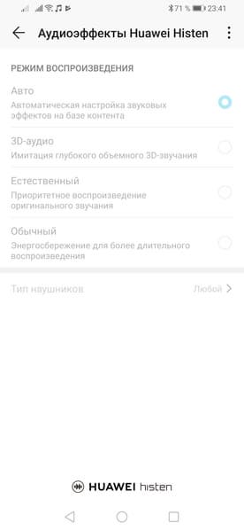 Основной динамик в аппарате один. Смартфон звучит через него громко, но как-то чуть плоско, что, впрочем, для устройства такого ценового диапазона нормально. В наушниках звучание тоже неплохое, но не более того. Для прослушивания в наушниках предусмотрена система аудиоэффектов Huawei Histen, есть пресеты для разных типов. Есть и FM-радио и полезный для записи семинаров диктофон со вполне хорошей чувствительностью.