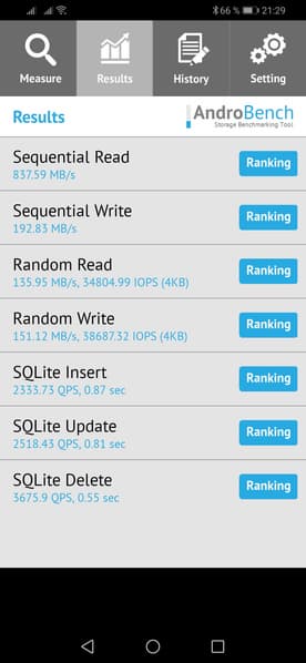 | Honor 9X (HiSilicon Kirin 710F) | Samsung Galaxy A70 (Qualcomm Snapdragon 675) | Xiaomi Mi 9 SE (Qualcomm Snapdragon 712) | Redmi Note 7 (Qualcomm Snapdragon 660) | Samsung Galaxy A50 (Samsung Exynos 9610) | |