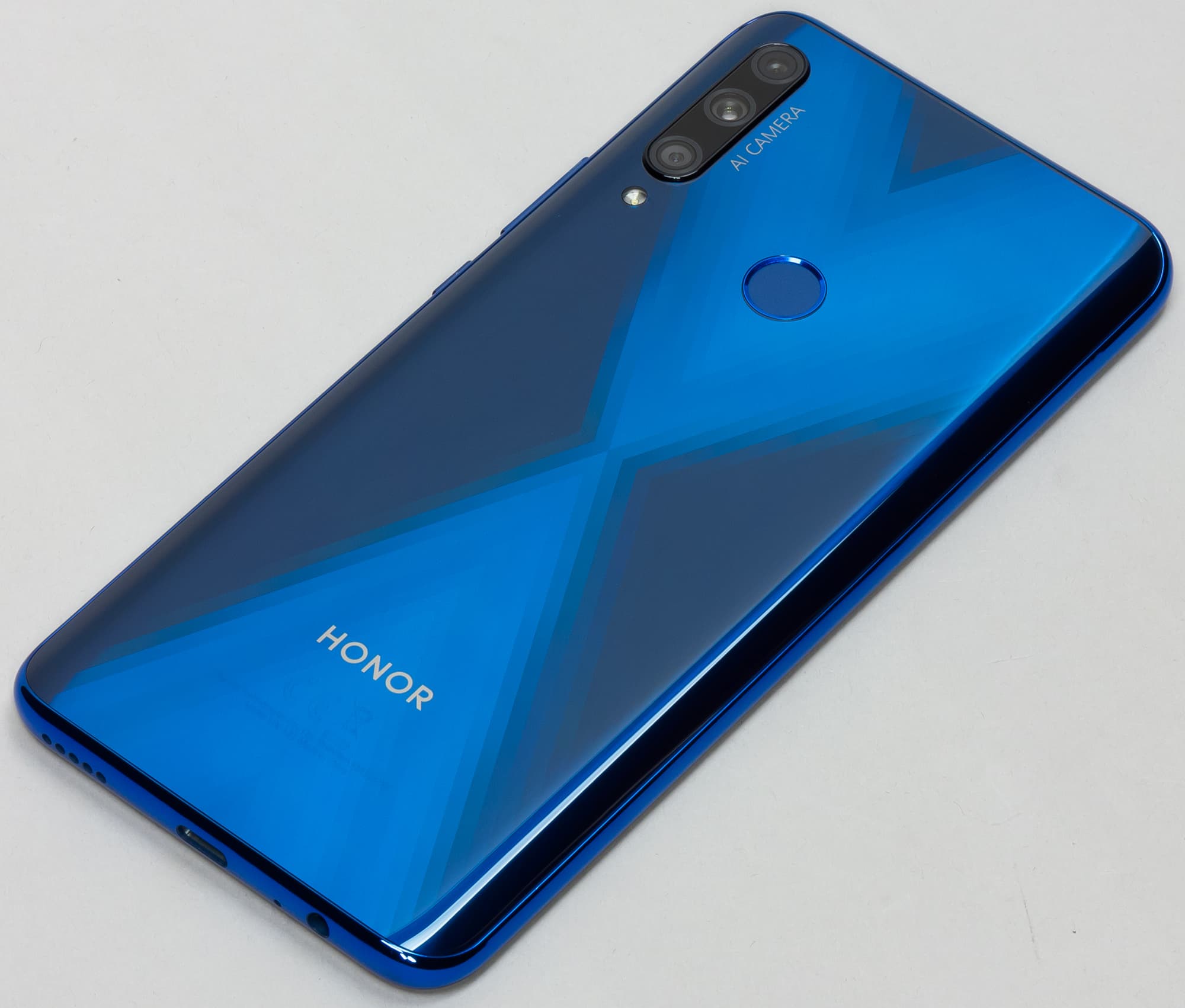 Honor 9X предлагается в России в двух вариантах окраса: синем и черном. Только синий вариант получил переливающийся геометрический рисунок на «спинке», в то время как черный вариант — однотонный. Защиты от пыли и влаги у смартфона нет.
