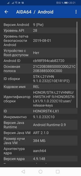 - Операционная система Android 9.0 (Pie); EMUI 9.1