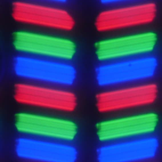 В данном смартфоне используется матрица типа IPS. Микрофотографии демонстрируют типичную для IPS структуру субпикселей: