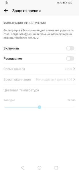 Присутствует модная настройка, позволяющая снизить интенсивность синей компоненты.