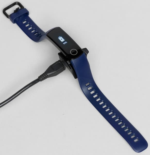 Аккумулятора (его ёмкость составляет 100 мАч) хватит на 14 дней работы в щадящем режиме. Мы пробовали включить постоянный мониторинг пульса, функцию TruSleep и вообще использовать браслет по-максимуму — и браслет разрядился на 6 дней.