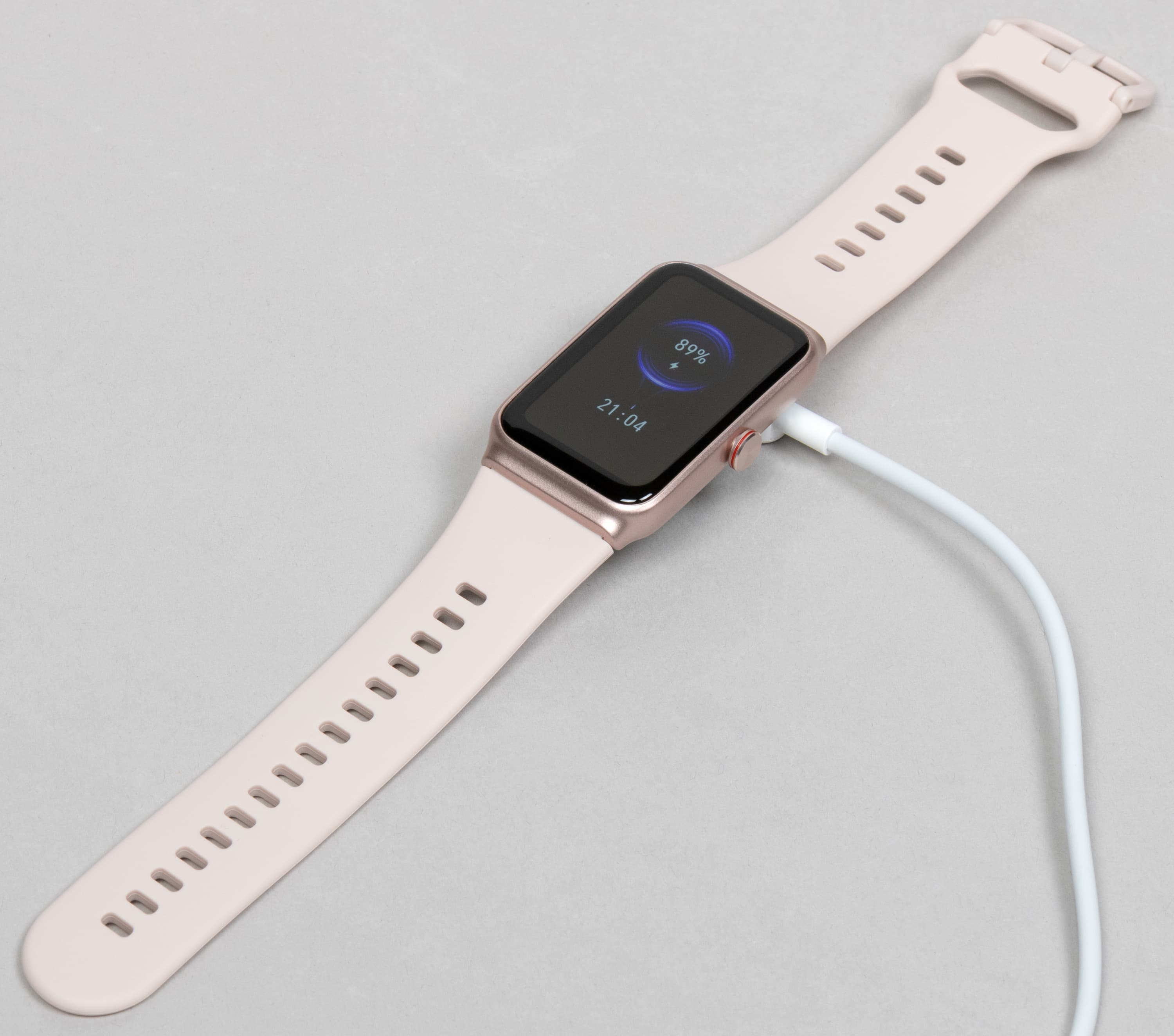 Зарядный кабель подсоединяется к спинке устройства — так, чтобы два контакта совпали. Это менее удобно, чем беспроводные зарядки, но вполне типично для бюджетного сегмента.