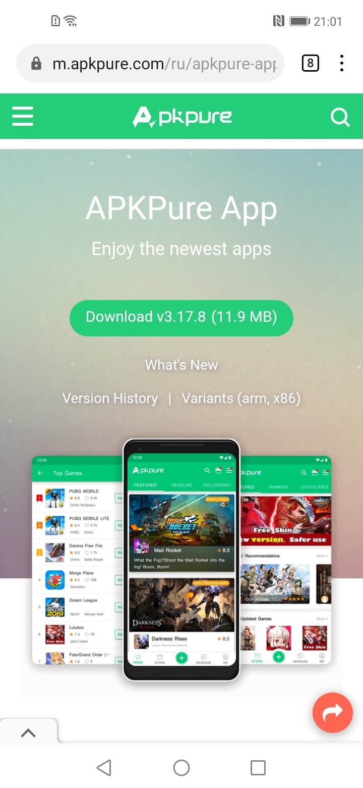 Есть множество способов, но здесь расскажем о двух. Во-первых, можно использовать архивы установочных APK-файлов. Их много, и самые крупные уже имеют проверку на вирусы и никогда не были серьезно скомпрометированы. А, например, у APKPure есть приложение-клиент, которое еще и следит за выходом новых версий установленных через него программ и предлагает обновить их.