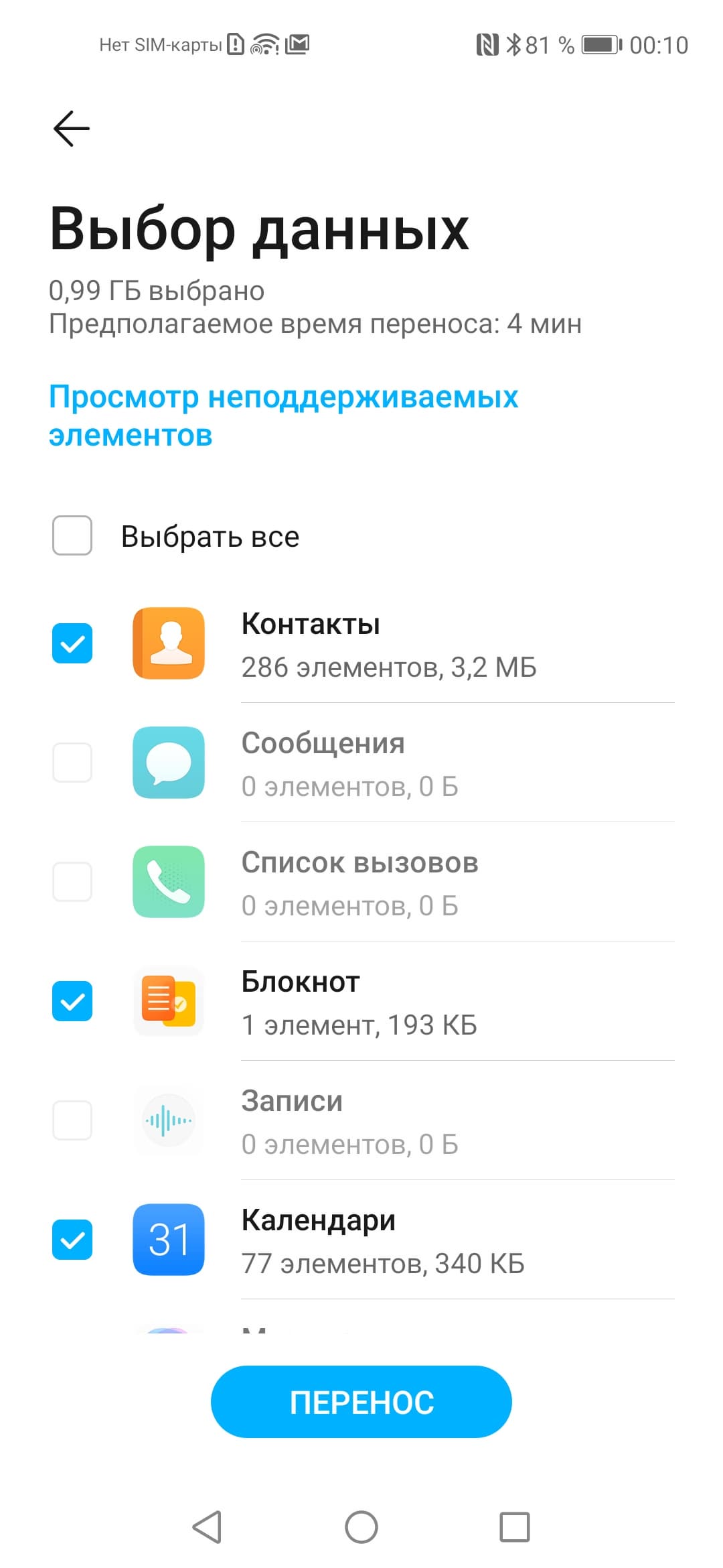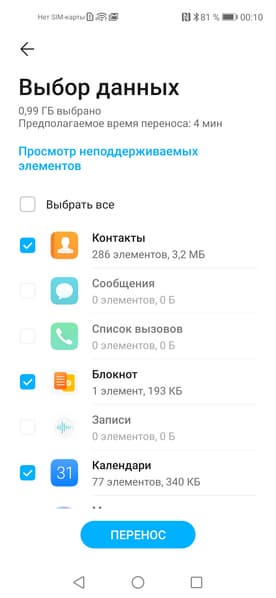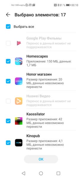Некоторые вещи сразу будут помечены как не подлежащие переносу. Приложение не удастся перенести, если оно требует для своей работы Google Mobile Services или просто несовместимо с вашим новым смартфоном.