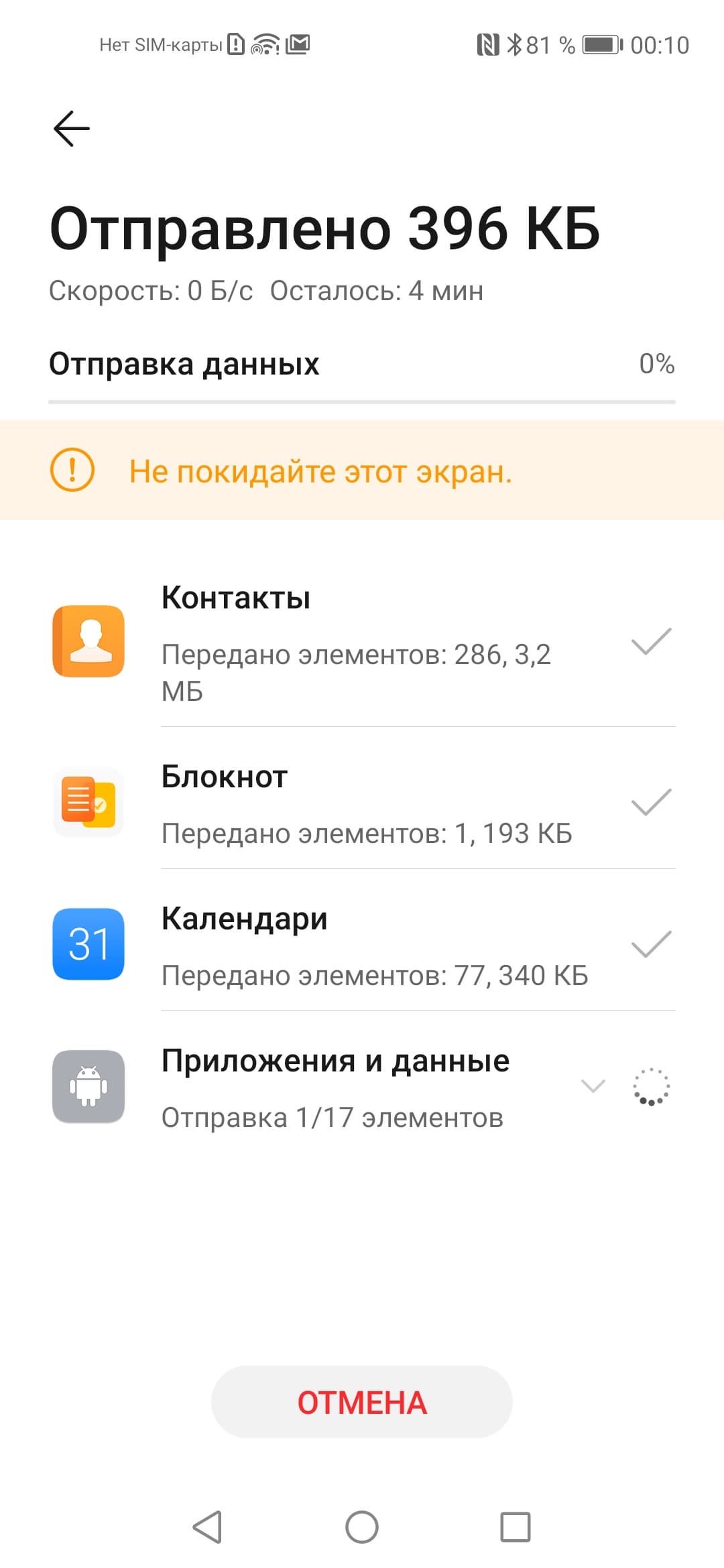 Запустите приложение на обоих смартфонах. На старом нужно только выбрать, что это старый аппарат. На новом — что новый, а также указать, что старый был устройством Huawei (Honor тоже к ним относятся).