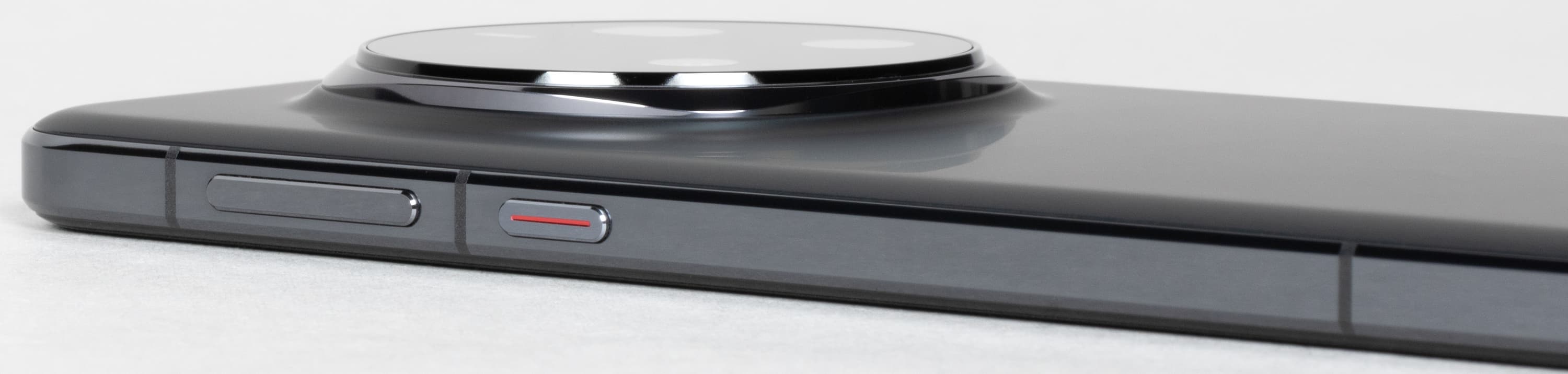 Боковые кнопки широкие, крупные, расположены на одном боку прямо под пальцами и легко нащупываются вслепую. Клавиша питания имеет дополнительное украшение в виде красной полосы.