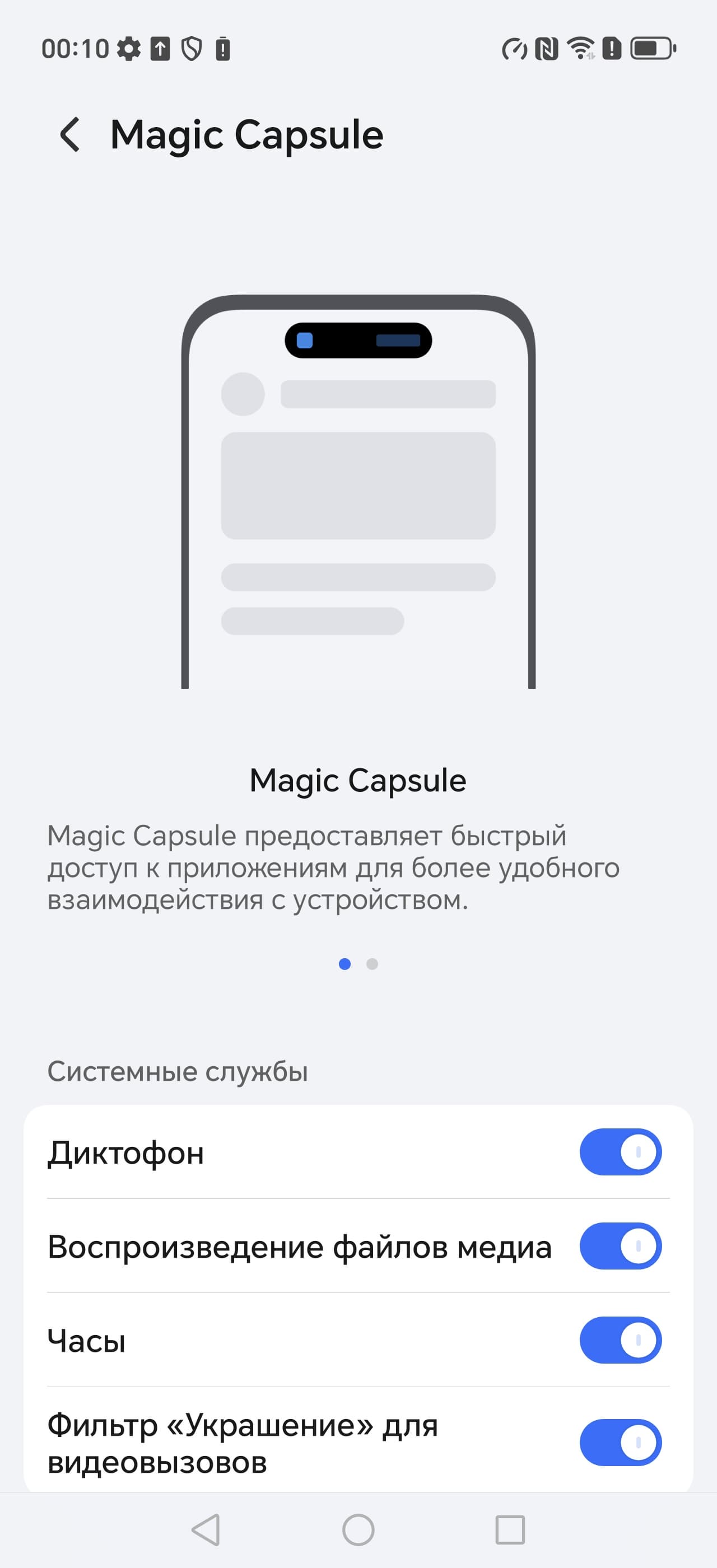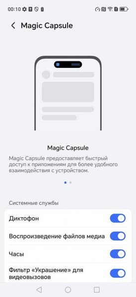 В верхней части матрицы экрана имеется отверстие вытянутой формы, за которым размещены селфи-камера и ToF-датчик, что позволяет разблокировать смартфон по лицу даже в полной темноте. Биометрическая защита у Honor Magic 7 Pro на высоком уровне, поскольку смартфон оснащен серьезной технологией 3D-сканирования лица, аналогичной той, что есть в айфонах. Такая «авторизация по лицу» подходит для банковских приложений.