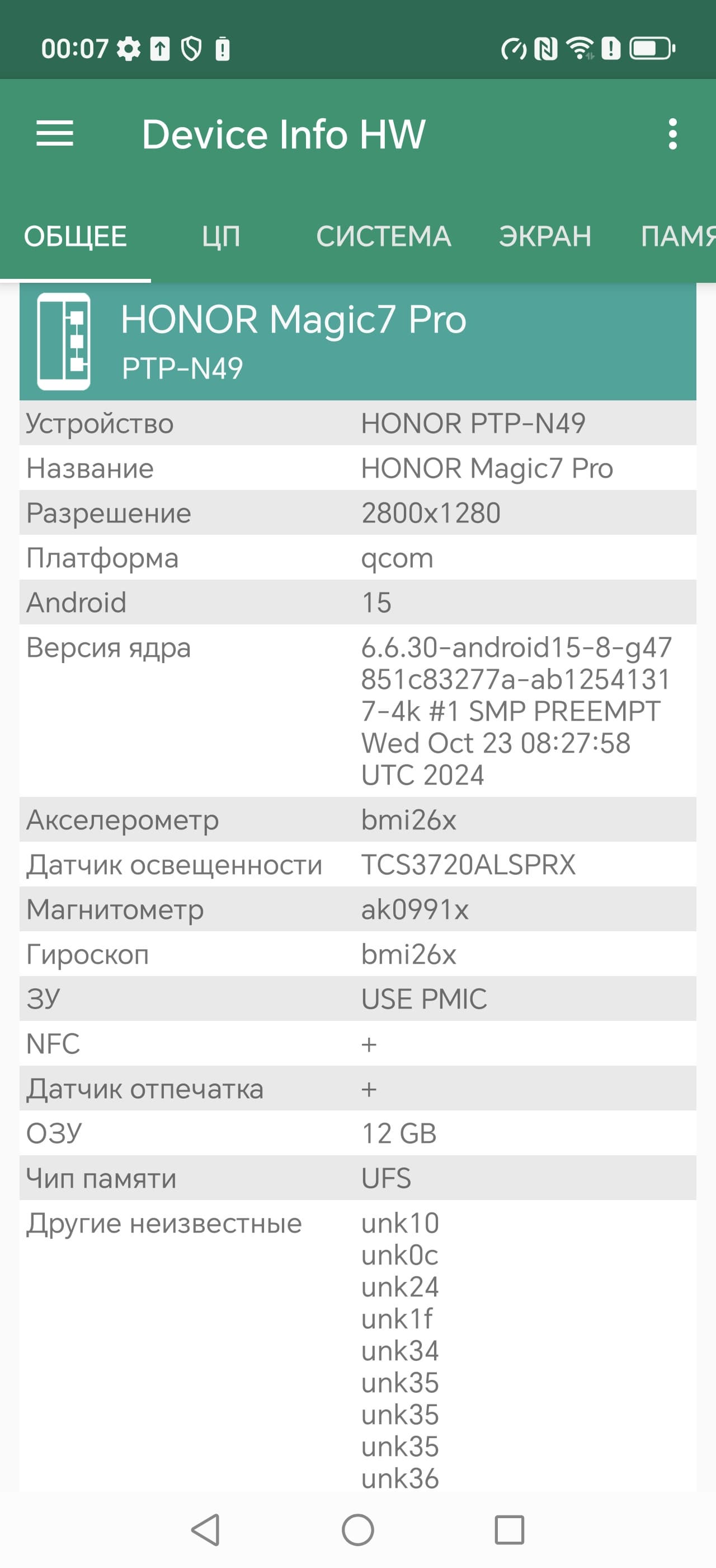 Основные характеристики Honor Magic 7 Pro (модель PTP-N49)