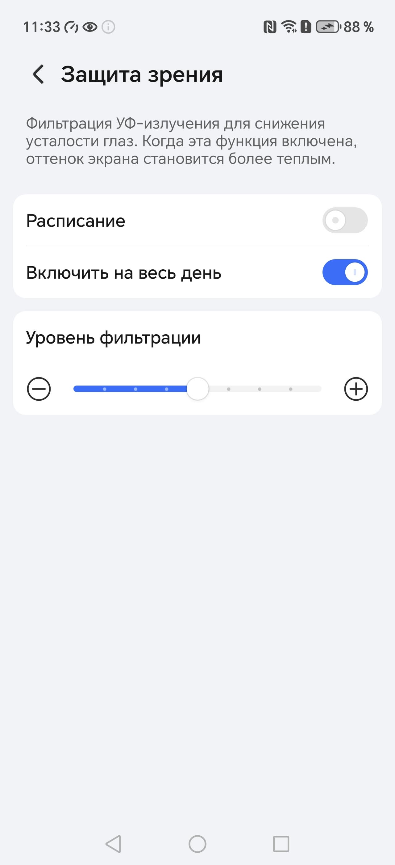 Разумеется есть функция снижения интенсивности синей компоненты: