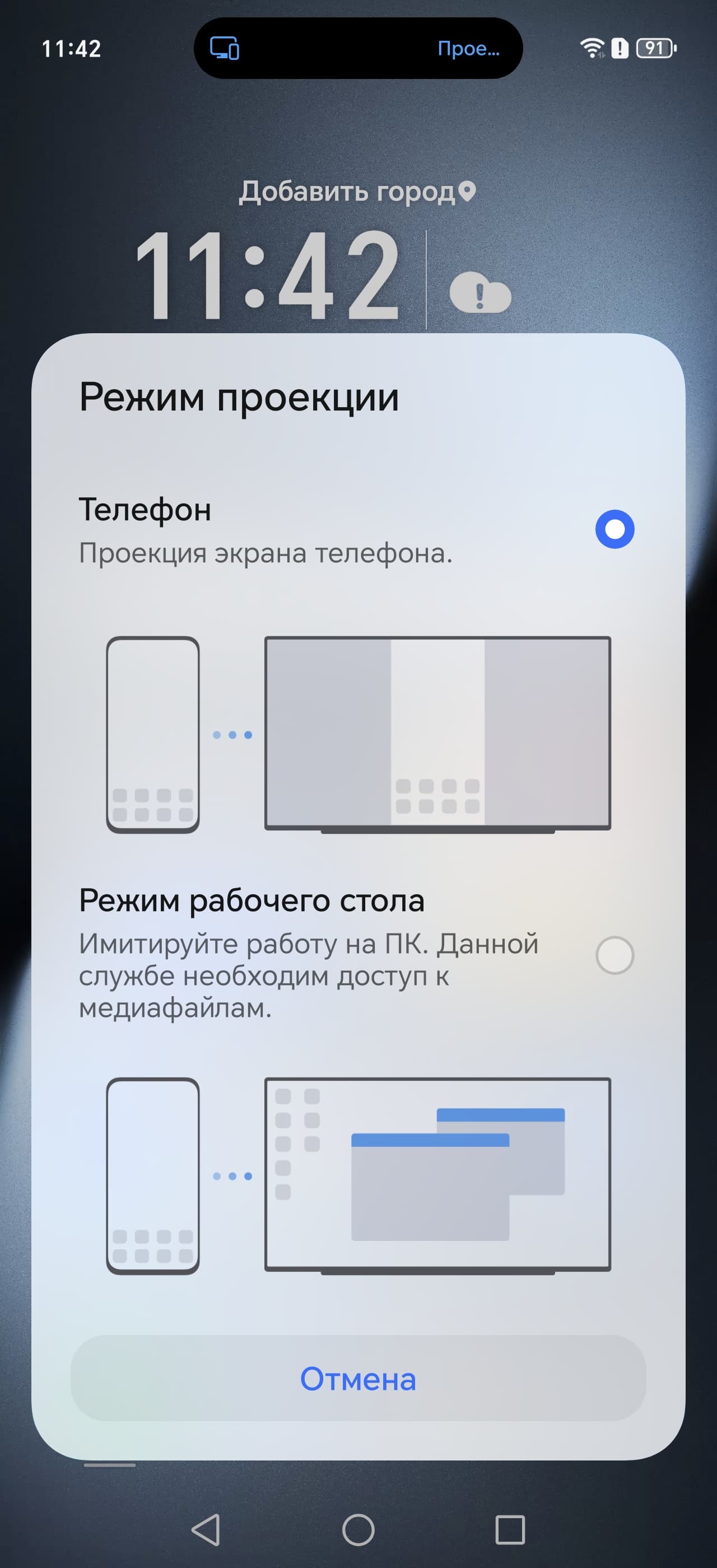 Во втором случае при портретной ориентации экрана смартфона картинка на экране ТВ выводится вписанной по высоте и с широкими черными полями по бокам, а при ландшафтной — вписанной по ширине с узкими черными полями сверху и снизу. Вывода точка в точку в обоих вариантах нет.