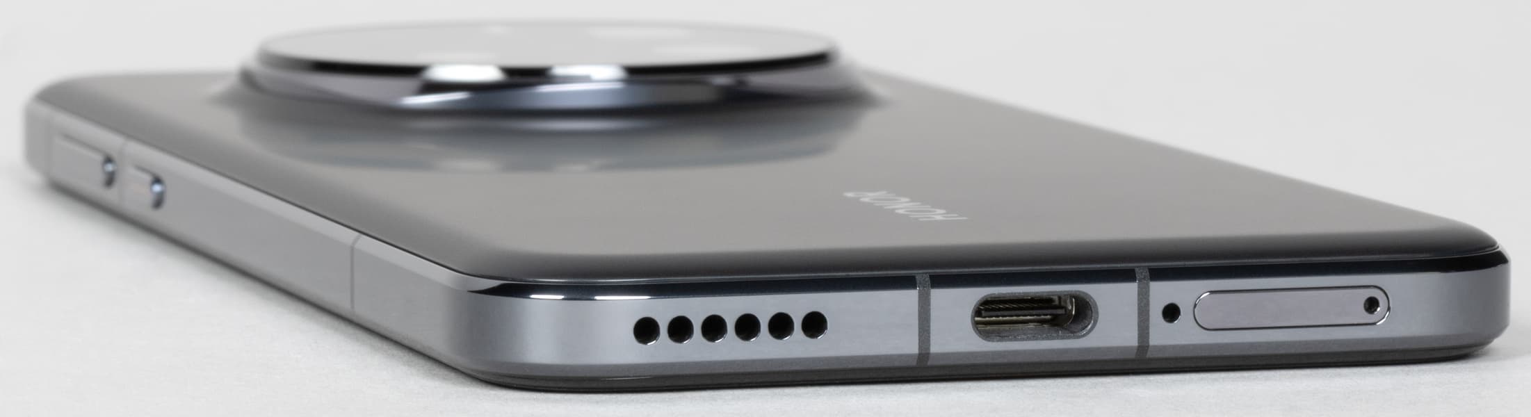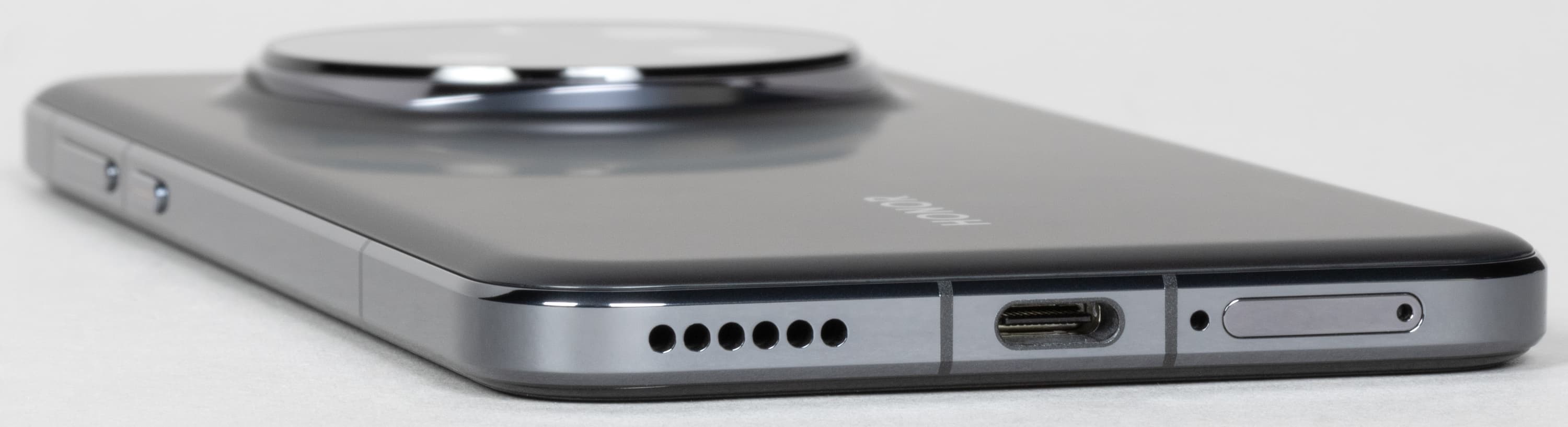 Также нижний торец содержит динамик, микрофон и разъем USB Type-C. 3,5-миллиметровый аудиовыход для проводной гарнитуры отсутствует.