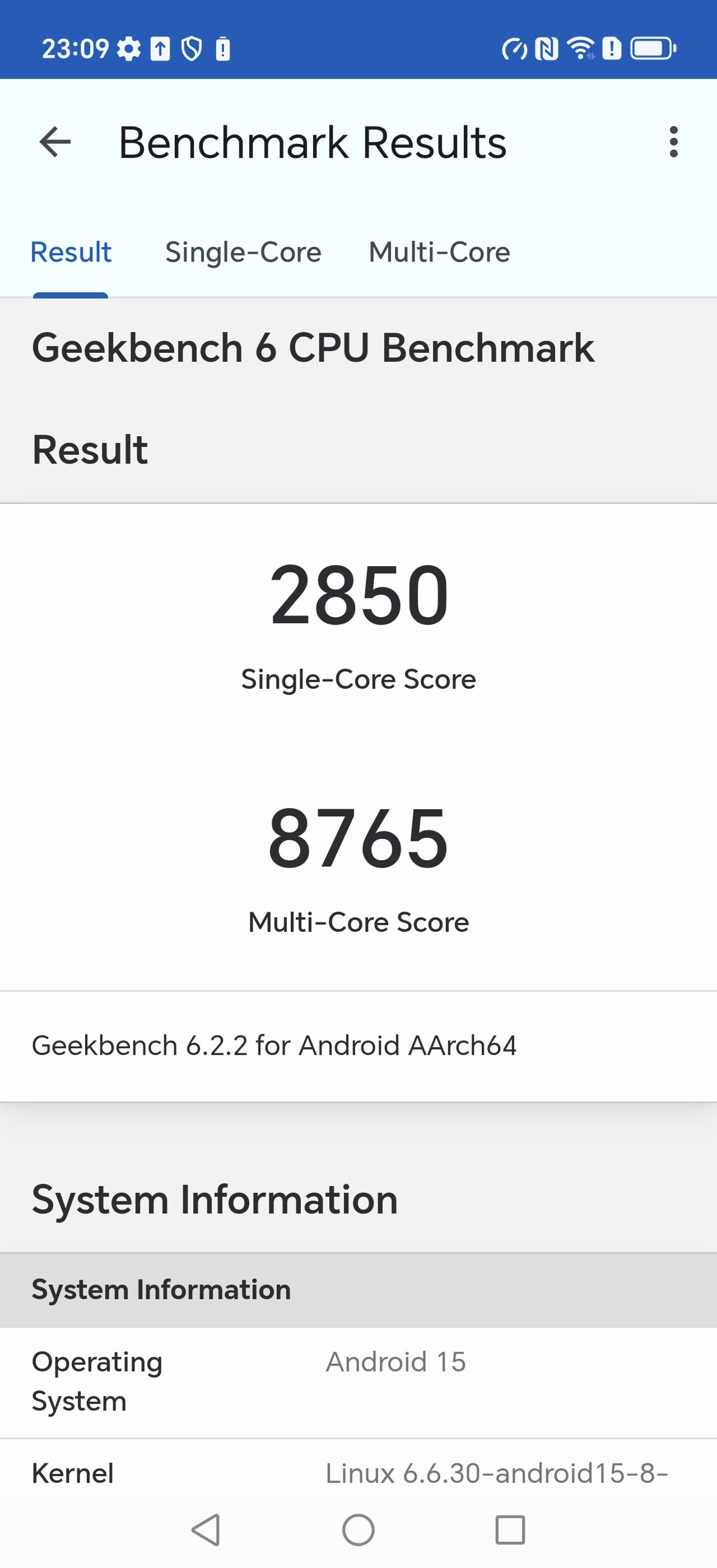 | GeekBench 6 (больше — лучше) | 2850/8765 | 1603/5100 | 2134/6902 | 1603/5041 | 1858/6053 |