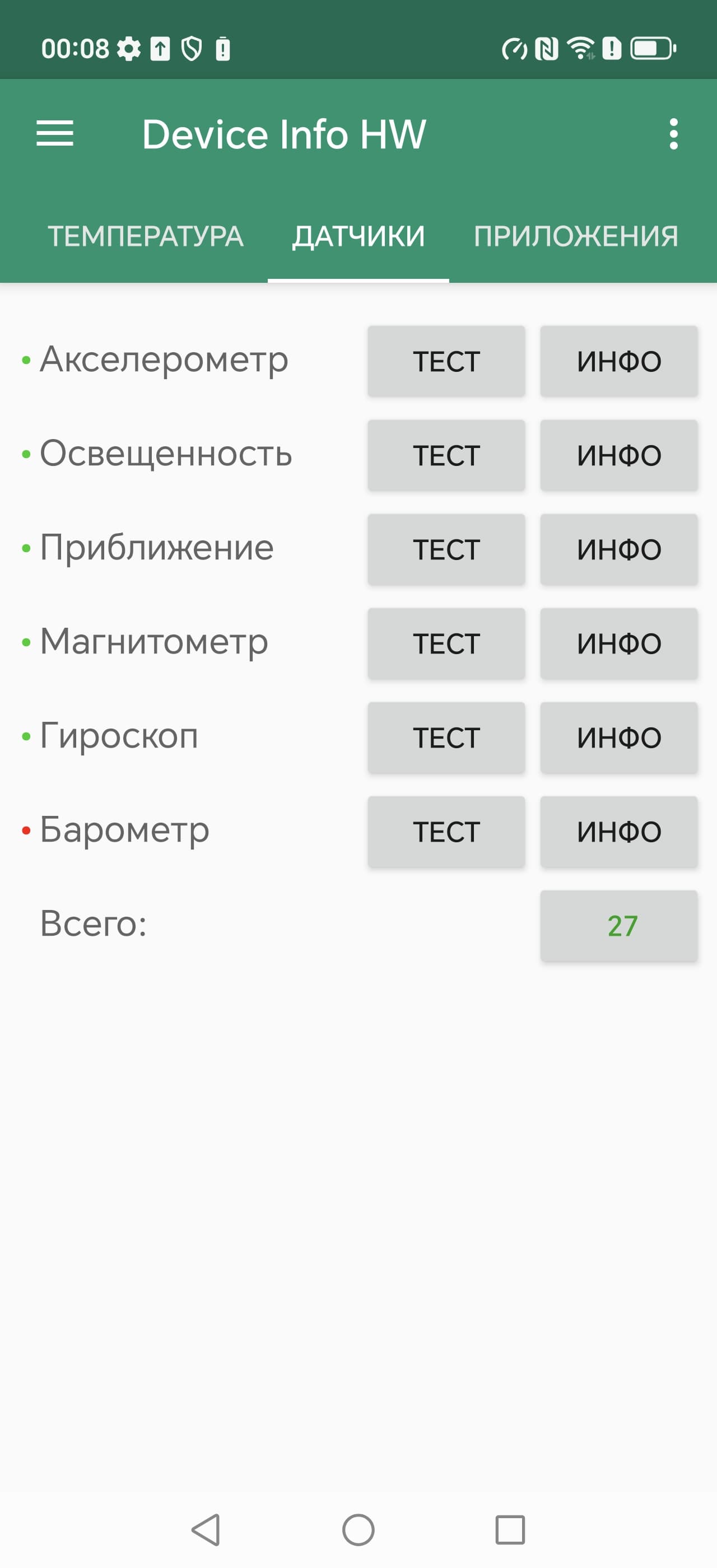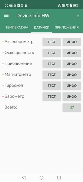 - Датчики приближения и освещения, магнитного поля, акселерометр, гироскоп