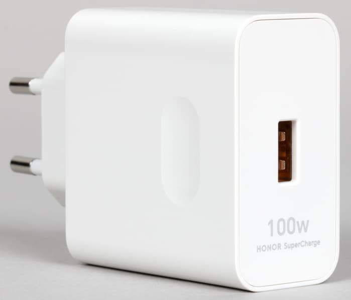 Смартфон Honor Magic 7 Pro поставляется в картонной коробке стандартной формы с лаконичным оформлением. Комплект включает сетевой блок питания мощностью 100 Вт, соединительный кабель и защитный чехол.