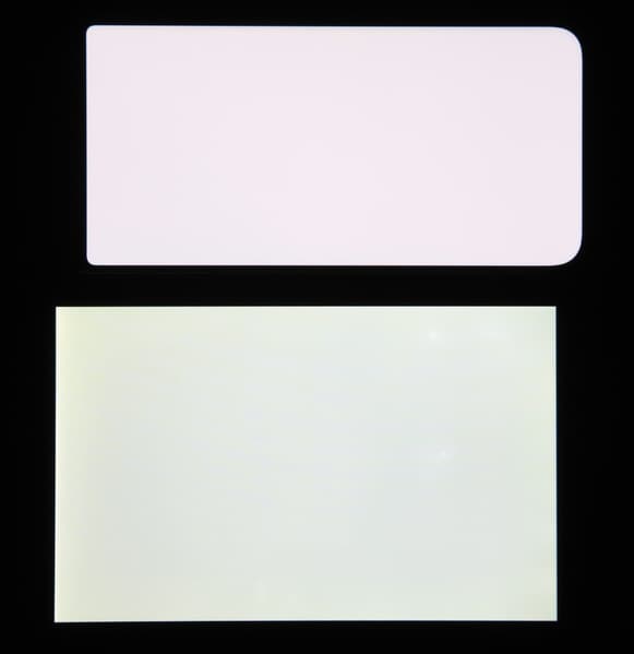 Отметим хорошую равномерность яркости и цветового тона белого поля (за исключением едва заметного затемнения и изменения оттенка к загнутым краям).