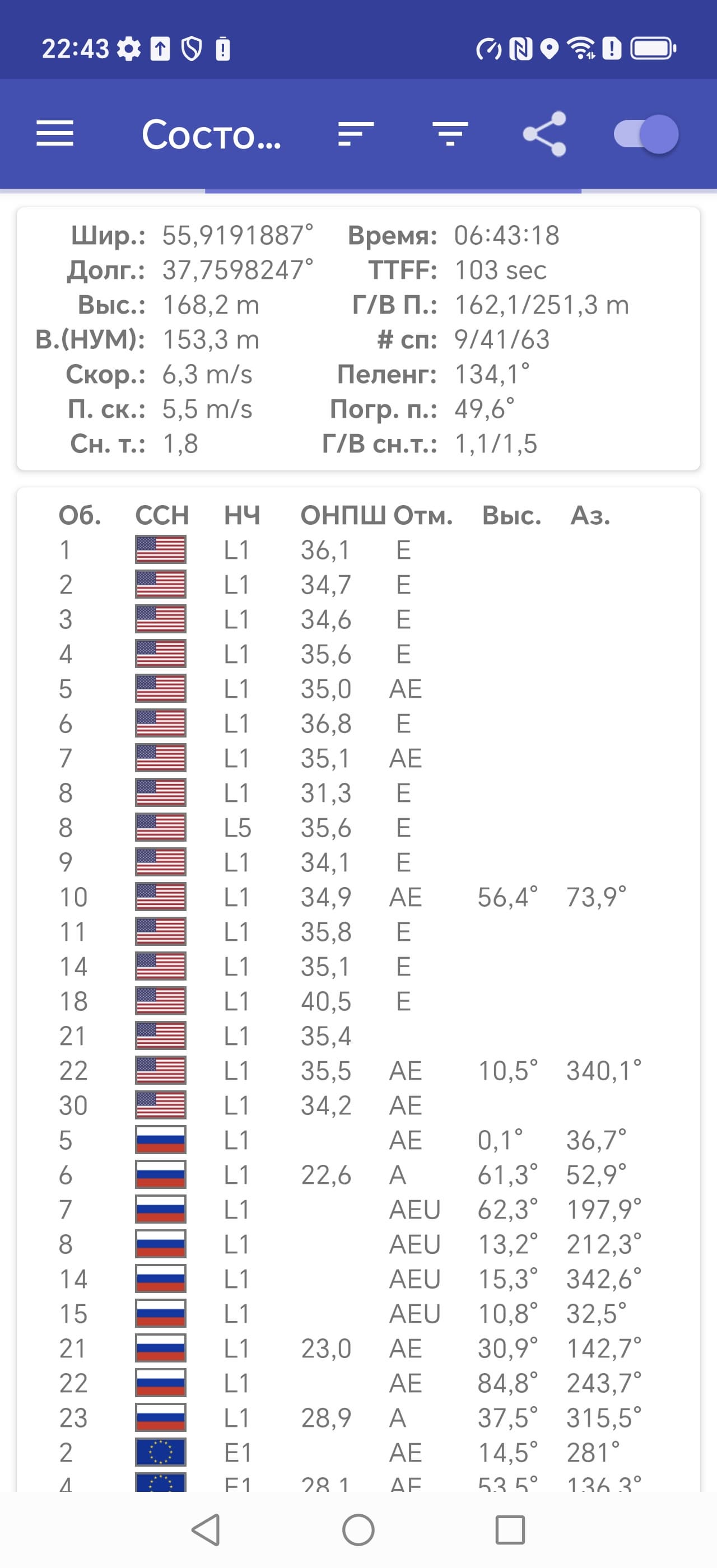 Двухканальный модуль спутниковой навигации работает с GPS, а также с Глонасс, BDS и Galileo. Точность позиционирования не вызывает претензий, хотя обнаружение спутников при холодном старте выполняется не молниеносно.