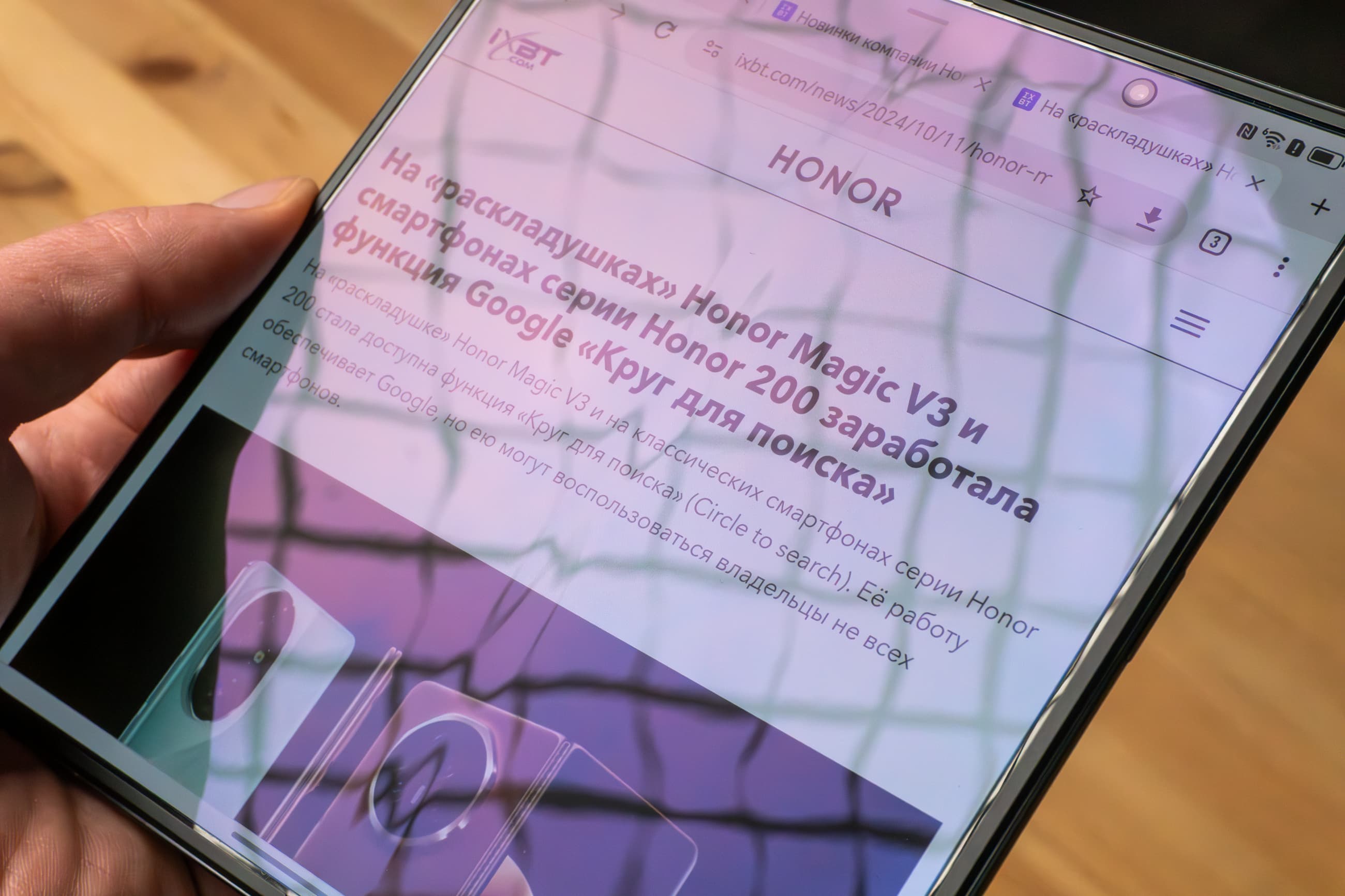 Оконный режим в Magic UI есть уже давно, причем работает и на обычных смартфонах, а в Honor Magic V3 он в самом деле пригождается. В обновлении этого года появились функции, испольщующие искусственный интеллект, о них расскажем в обзоре. Часть из них — разработка Google, например, «Волшебный ластик» (позволяет удалять лишние объекты с фото) и «Круг для поиска» (можно обвести что угодно на экране и отправить это как поисковый запрос).