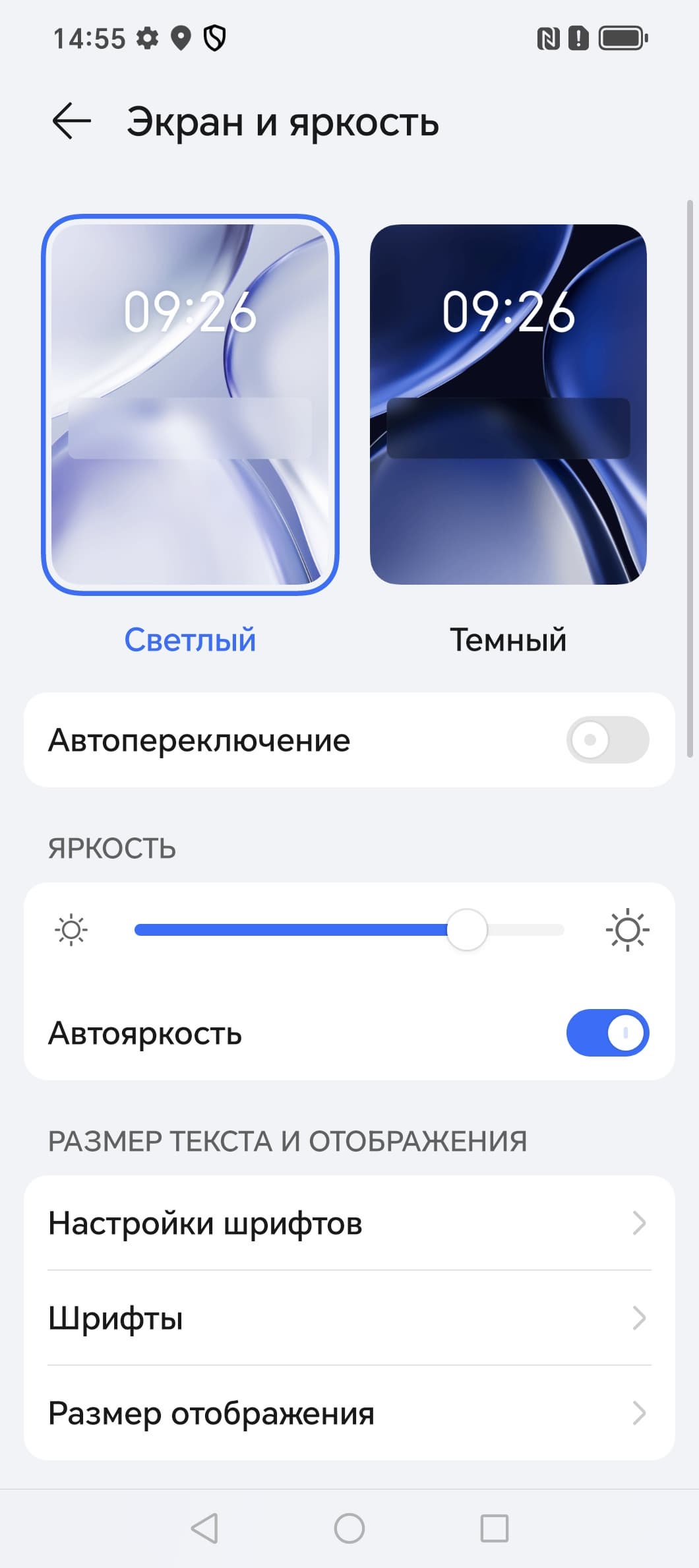 При выводе белого поля во весь экран и при ручном управлении яркостью ее максимальное значение составило 520/760 кд/м² (основной/дополнительный экраны) в обычных условиях, а на очень ярком свету оно может повышаться до 950/1800 кд/м². Максимальная яркость очень высокая. Также нужно учитывать тот факт, что в данном случае чем меньше площадь белого на экране, тем он светлее, то есть фактическая максимальная яркость белых участков будет почти всегда выше указанного значения. В итоге читаемость обоих экранов днем на солнце должна быть на отличном уровне, а темная тема не только экономит заряд аккумулятора, но способствует лучшей разборчивости информации на экране в условиях высокой освещенности. В режиме HDR (то есть для HDR‑контента) максимальная яркость достигает порядка 980/2450 кд/м² для небольших по площади участков (1% белого и ниже) и 960/1700 кд/м² для белого во весь экран.