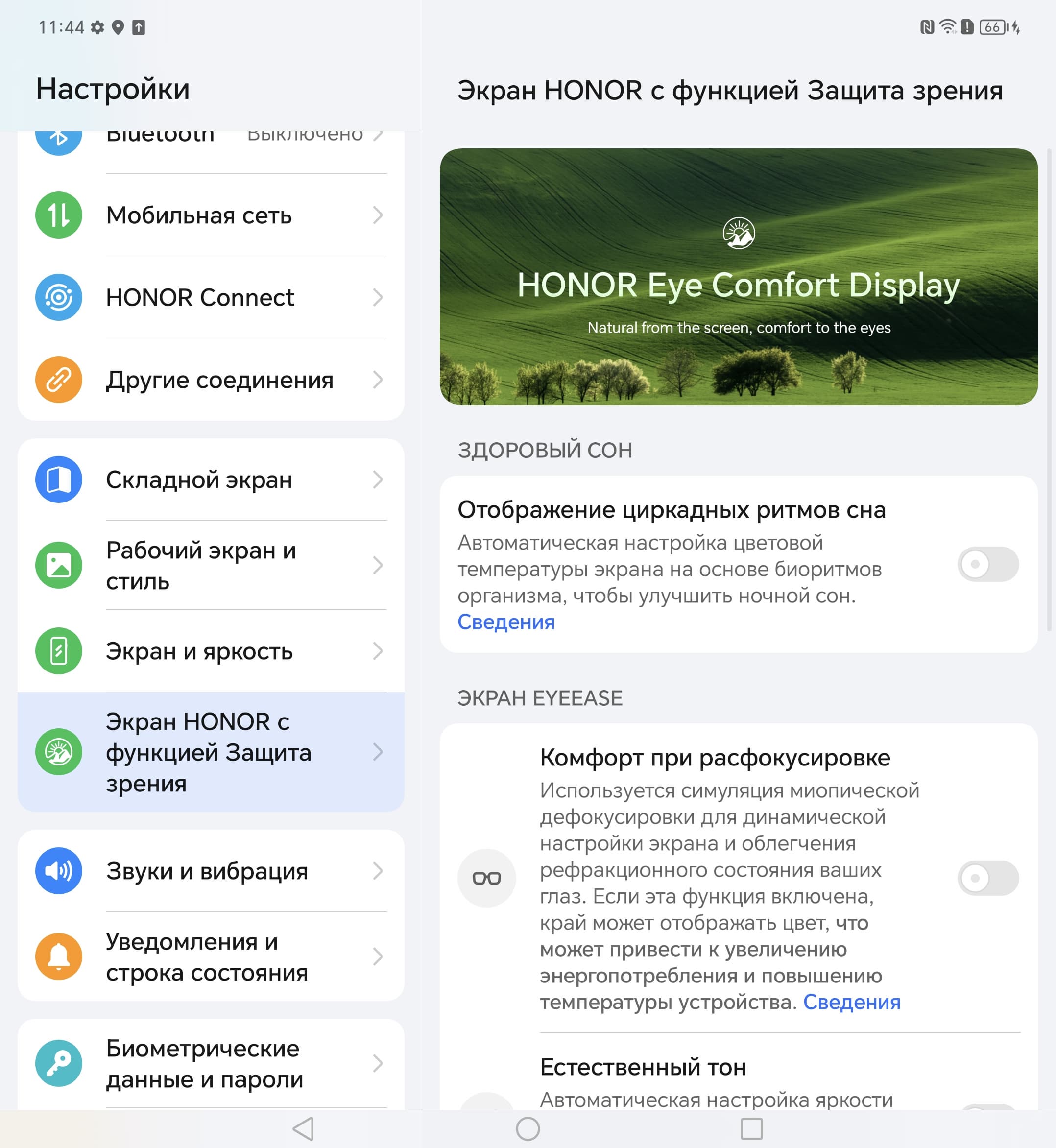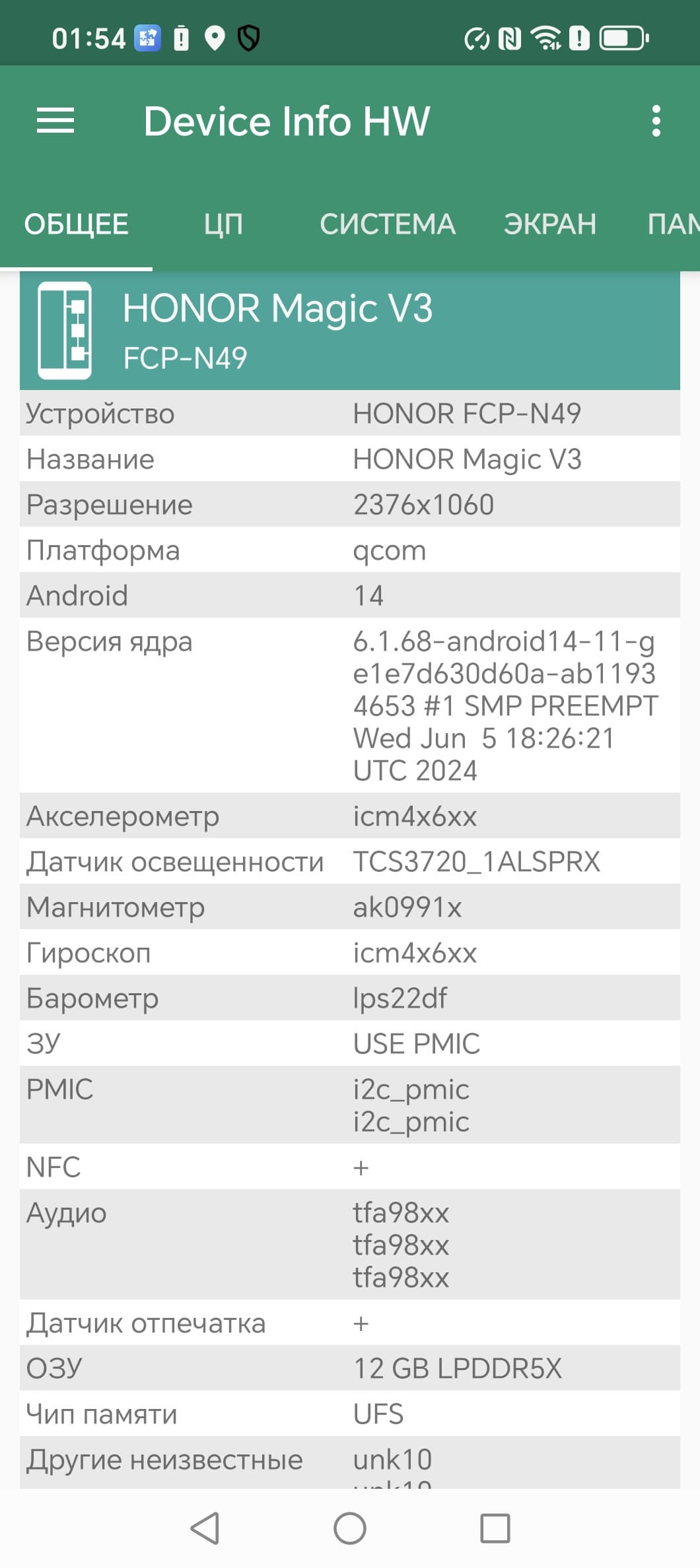 Сетевые возможности Honor Magic V3 максимальны: есть поддержка 5G, Wi-Fi 7, Bluetooth 5.3 LE, NFC, порт USB Type-C поддерживает скоростной режим USB 3.1 (USB 3.2 Gen2) и USB OTG, а также вывод изображения Display Port 1.2. На практике в пределах городской черты московского региона аппарат демонстрирует уверенную работу в беспроводных сетях, не теряет связь, быстро восстанавливает связь после вынужденного обрыва.
