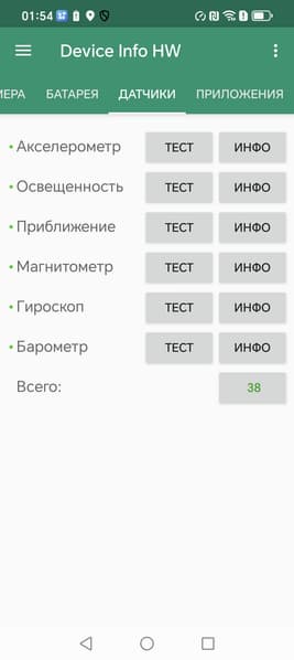 - Датчики приближения и освещения, магнитного поля, акселерометр, гироскоп, барометр