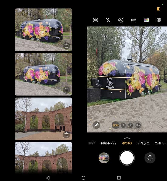 Основная камера по умолчанию делает снимки в разрешении 12,5 Мп с объединением пикселей, а также есть возможность снимать в полном разрешении 50 Мп (режим Hi-Res). Привычно для Honor, был использован знакомый метод: при уменьшении фотографии идет не «честный» пересчет 4 в 1, картинка предварительно кадрируется с обрезанием потенциально проблемных краев и углов. В итоге «фокусное расстояние» на двух снимках с одного места кажется разным (детали на полноразмерных фотографиях крупнее примерно в 1,7 раза, а не в 2).