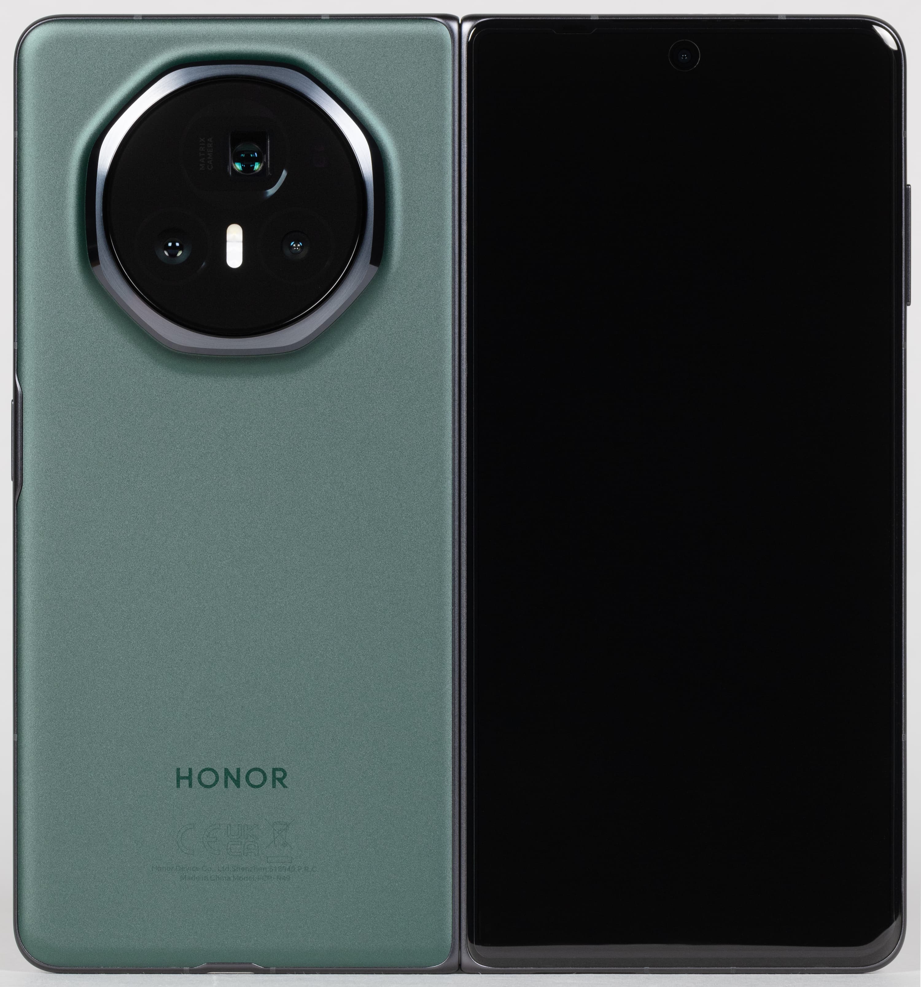 Honor Magic V3 продается в России в черном и в зеленом исполнении. Корпус имеет сертифицированную защиту от влаги по стандарту IPX8 (можно полностью погружать в воду на 2,5 метра на время до 30 минут). Однако эта сертификация не предполагает защиты от пыли.