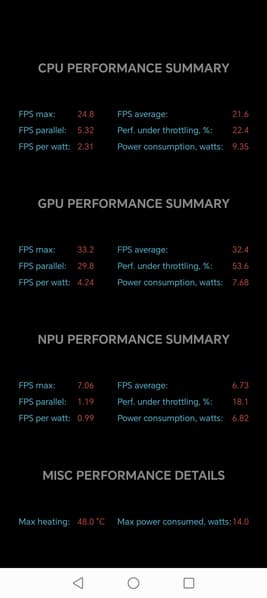 Тест на снижение производительности при нагреве мы проводим с помощью программы Burnout Benchmark, которая позволяет нагружать CPU, GPU и NPU: