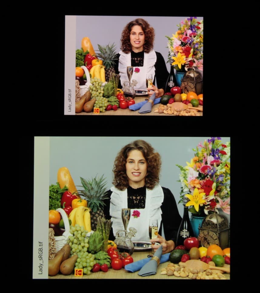Отметим, что на экранах с уширенным цветовым охватом (без соответствующей коррекции) цвета́ обычных изображений, оптимизированных для устройств sRGB, выглядят неестественно насыщенными. Отсюда и рекомендация: в большинстве случаев смотреть кино, фотографии и все естественное лучше при выборе профиля Обычные. При этом, если в изображении прописан отличный от sRGB профиль, то смотреть его лучше с использованием штатной программы Галерея.