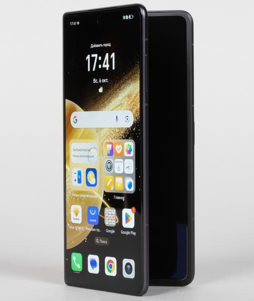 Honor Magic V3 удивляет прежде всего своими габаритами. Смартфон выполнен в раскладном форм-факторе, что предполагает увеличенную толщину корпуса из двух половинок, но здесь половинки очень тонкие, поэтому даже в сложенном состоянии толщина смартфона меньше 10 мм. Magic V3 — настолько легкий и тонкий складной смартфон, насколько это сейчас возможно.