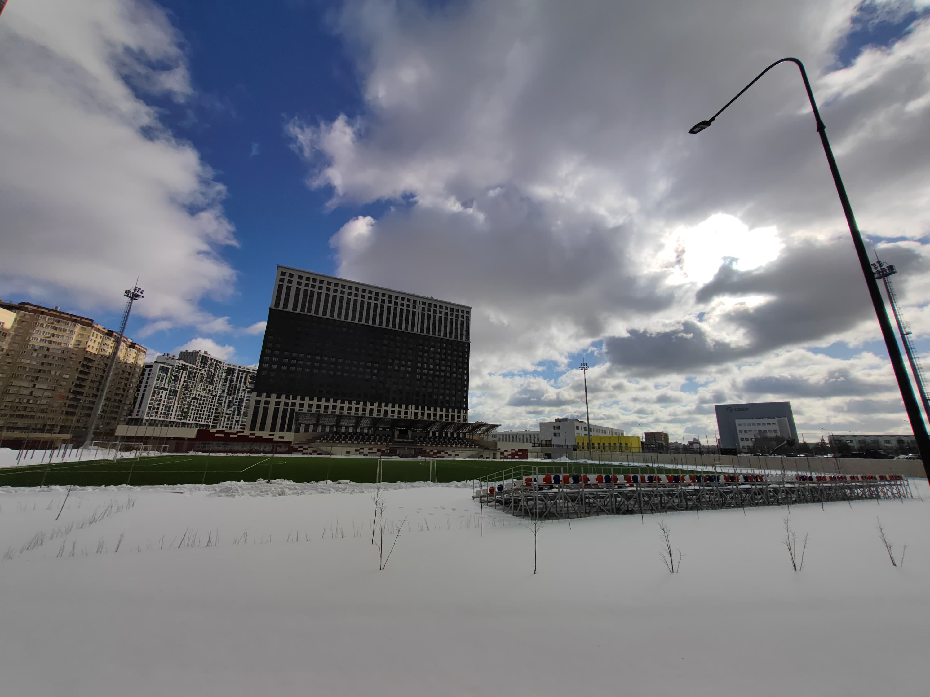 Модуль, предназначенный для широкоугольной съемки, имеет матрицу 50 Мп и угол обзора объектива 122°. Детализация здесь значительно слабее, на 50-мегапиксельные фотографии слабонервным вообще смотреть не рекомендуется. Впрочем, в центральной части кадра при ярком освещении резкость вполне приличная, но практически ничем другим эта камера похвастать не может. По краям картинка очень рыхлая, а еще явно какие-то проблемы с выставлением экспозиции — снимки гораздо более темные, чем на главную камеру, и это ничем не оправдано.