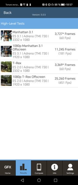 | GFXBenchmark T-Rex (1080p Offscreen, fps) | 451 | 256 | 274 | 246 | 481 |
