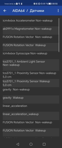 - Датчики приближения и освещения, магнитного поля, акселерометр, гироскоп