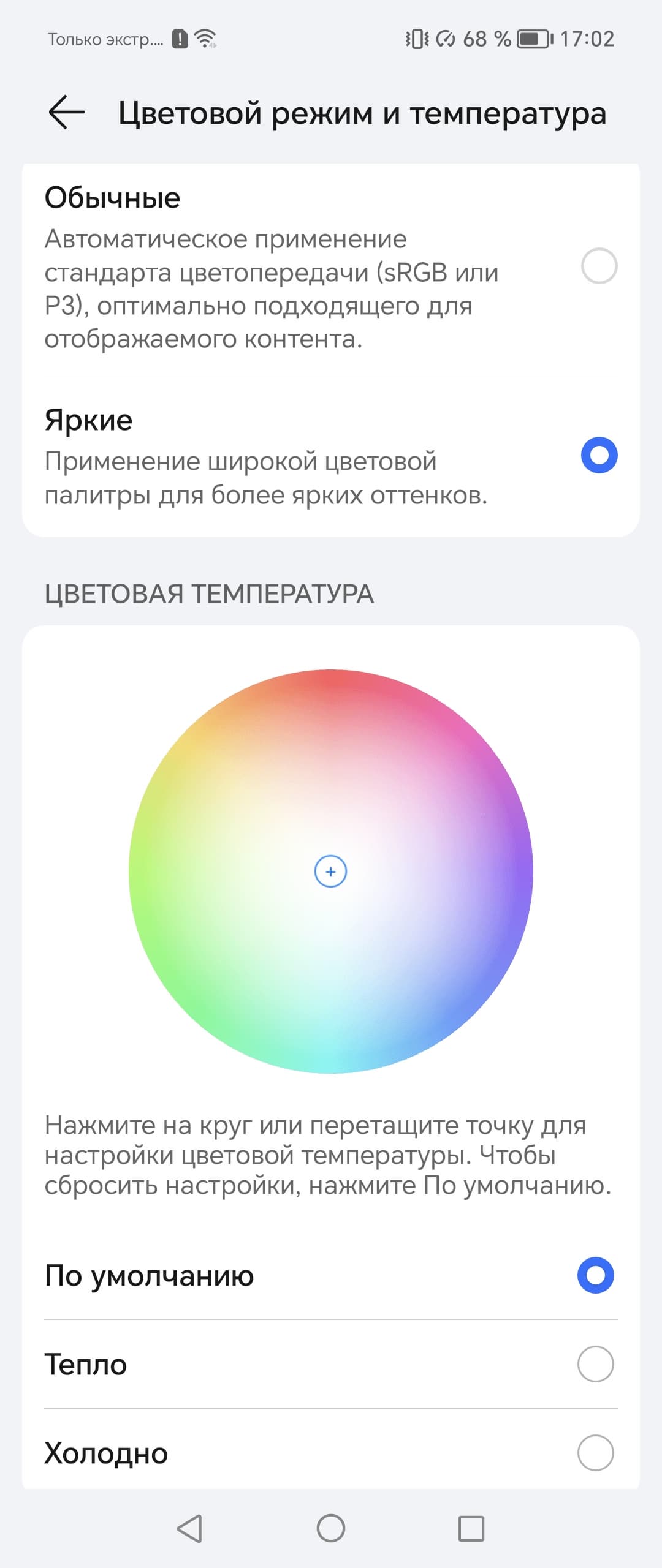 Фотография выше получена после выбора профиля Обычные в настройках экрана, всего их два: