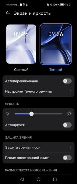 При выводе белого поля во весь экран и при ручном управлении яркостью ее максимальное значение составило 550/510 кд/м² (основной/дополнительный экраны) в обычных условиях, но на очень ярком свету оно повышается до 800/1000 кд/м². Также нужно учитывать тот факт, что в данном случае чем меньше площадь белого на экране, тем он светлее, то есть фактическая максимальная яркость белых участков будет почти всегда выше указанного значения. В итоге читаемость обоих экранов днем на солнце должна быть на отличном уровне, а темная тема не только экономит заряд аккумулятора, но способствует лучшей разборчивости информации на экране в условиях высокой освещенности. Минимальное значение при ручном управлении яркостью — 4/5 кд/м², то есть пониженный уровень яркости без проблем позволяет использовать устройство даже в полной темноте. Работает автоматическая регулировка яркости по датчикам освещенности (они расположены под экранами близко к верхнему краю правее камер). Работа этой функции зависит от положения ползунка регулировки яркости: им пользователь может попытаться выставить желаемый уровень яркости в текущих условиях. Если оставить все по умолчанию, то в полной темноте функция автояркости уменьшает яркость до 6 кд/м² (темновато), в условиях освещенного искусственным светом офиса (примерно 550 лк) устанавливает на 150/140 кд/м² (нормально), а условно под прямыми лучами солнца повышает до 800/1000 кд/м² (отлично). Ради эксперимента в полной темноте мы чуть увеличили яркость и измерили яркость в различных условиях. Установленное значение яркости в темноте сохранилось, в офисе не сильно изменилось, а на ярком свету всегда повышалось до максимума. Получается, что функция автоподстройки яркости работает адекватно и в какой-то степени позволяет пользователю настраивать свою работу под индивидуальные требования.