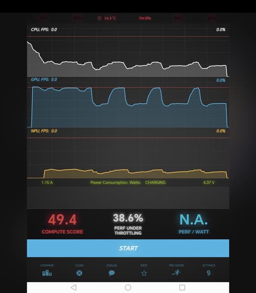 Тест на снижение производительности при нагреве мы проводим с помощью программы Burnout Benchmark, которая позволяет нагружать CPU, GPU и NPU: