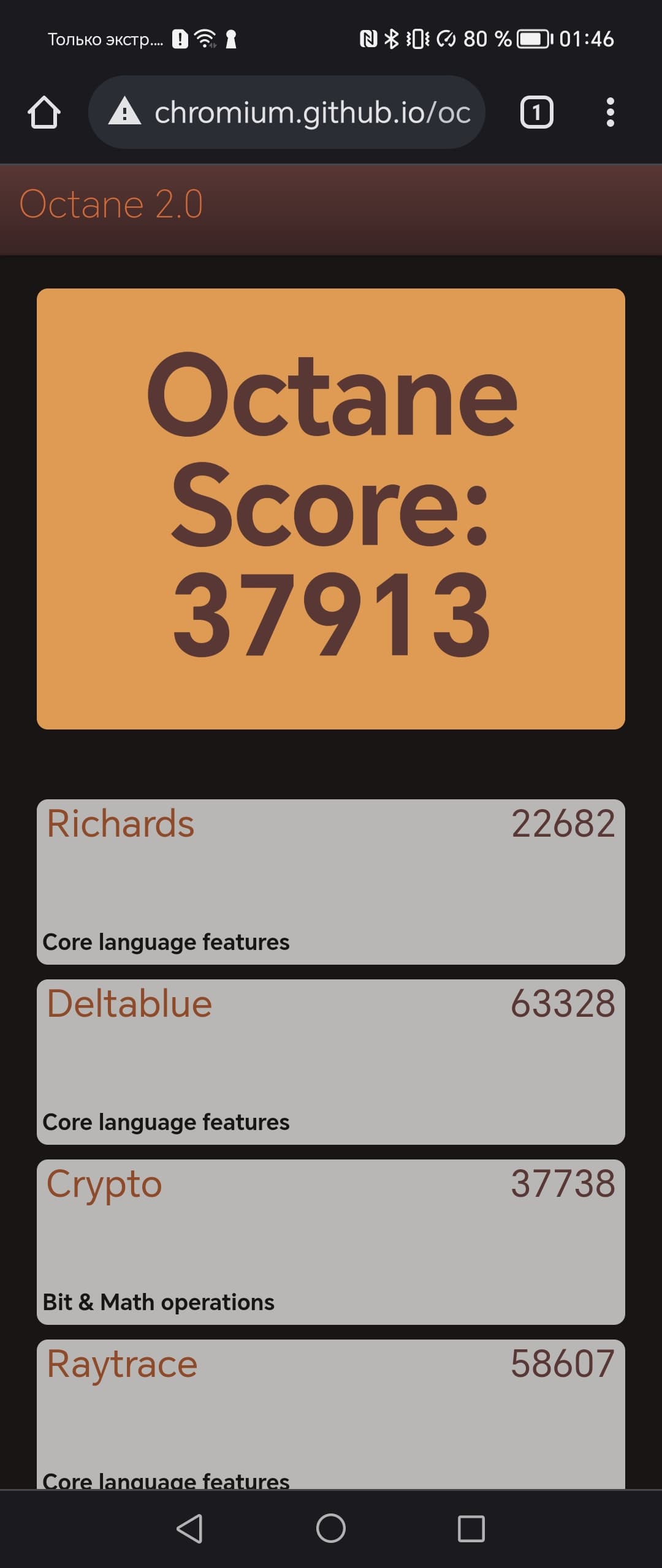 | Google Octane 2 (больше — лучше) | 37913 | 30849 | 36245 | 54735 | 59248 |