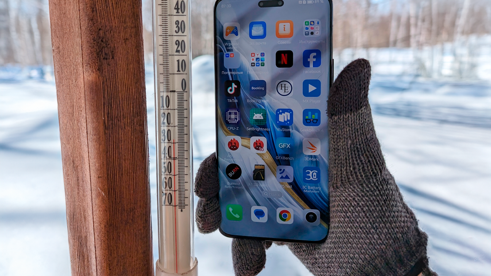 Но вернёмся к морозу. Аккумулятор нового типа, как заявляется, гораздо лучше переносит экстремальные условия вроде слишком низкой или высокой температуры. Мы проверили это и в холодной апрельской Якутии, и в обычной морозилке холодильника (московского, но это и не важно). При глубоко минусовой температуре смартфон теряет заряд очень медленно. Например, за ночь в морозилке Honor Magic6 Pro потерял всего лишь 4% заряда, пролежав в инее всю ночь, целых 8 часов. То есть всего полпроцента в час. При активном использовании на сильном морозе смартфоне тоже не разряжается стремительно и не делает попыток выключиться.