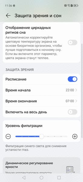 В описании режима Защита зрения приведена дезинформация про усталость глаз. В принципе, яркий свет может приводить к нарушению суточного (циркадного) ритма (см. статью про iPad Pro с дисплеем 9,7 дюйма), но все решается снижением яркости до низкого, но еще комфортного уровня, а искажать цветовой баланс, уменьшая вклад синего, нет абсолютно никакого смысла.