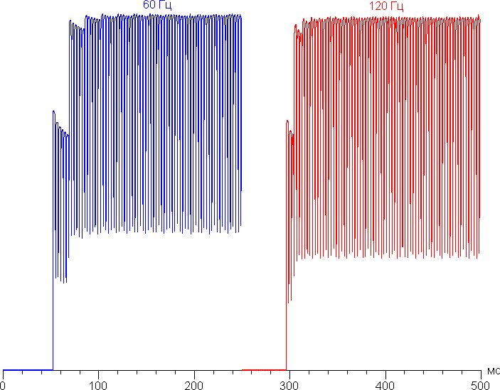 Характер модуляции при этом не меняется. Заметим, что на статичных и не очень динамичных изображениях частота обновления в любом случае снижается да 30 Гц.