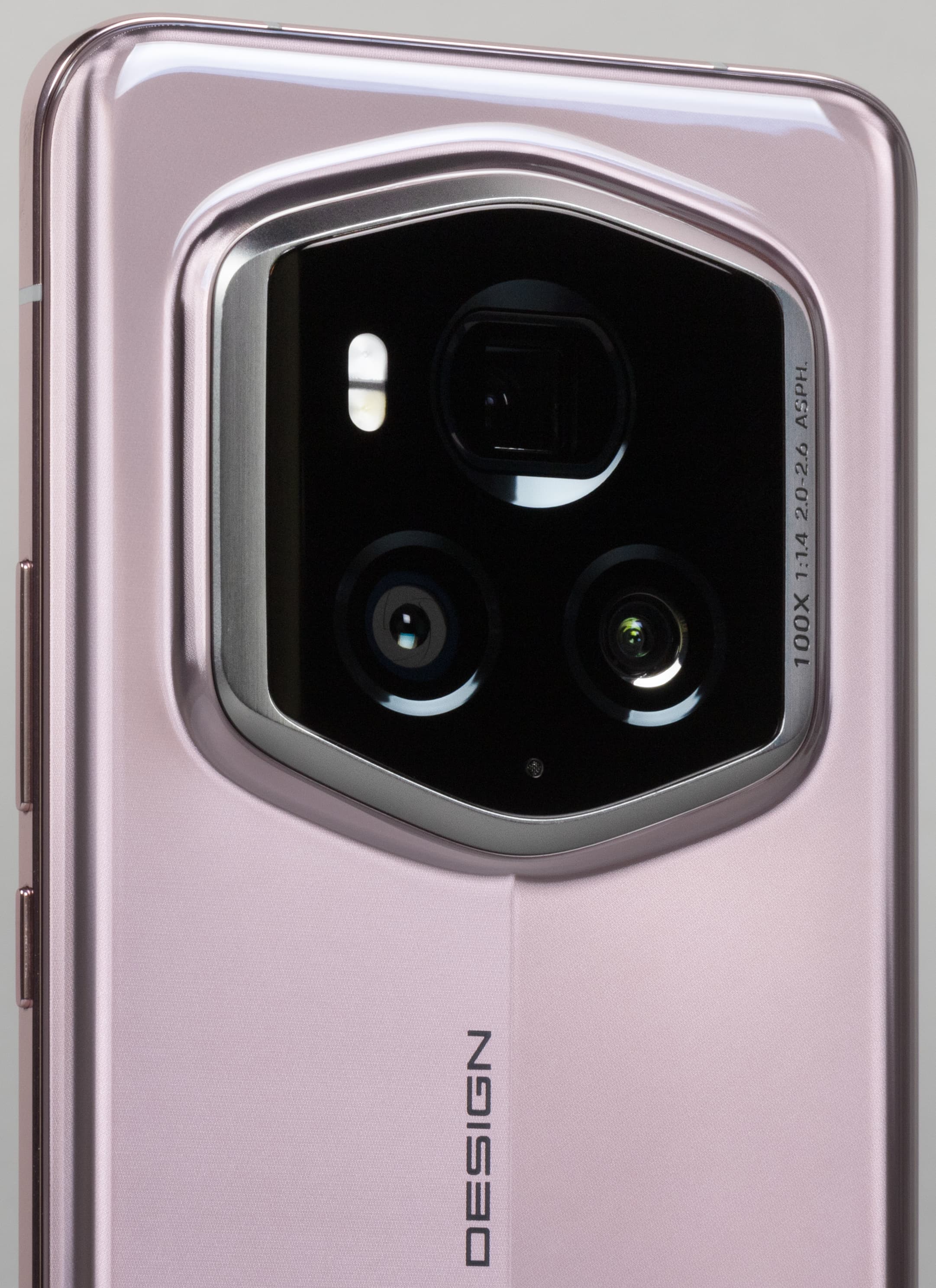 Сзади у корпуса заметно выступает массивный блок затейливой гексагональной формы с камерами и вспышками. Угловые части корпуса в плане заметно скруглены, вслед за ними пришлось очень сильно скруглить и углы экрана.