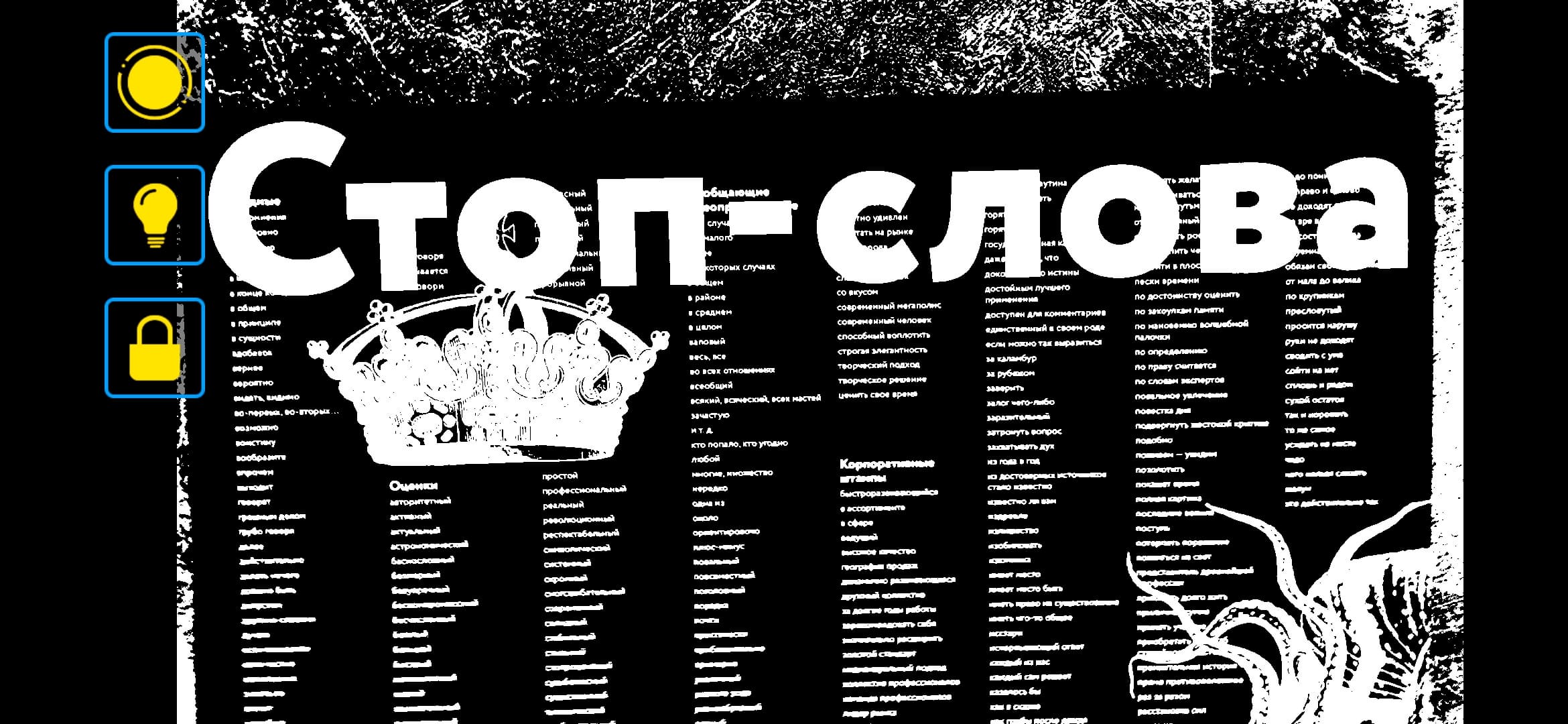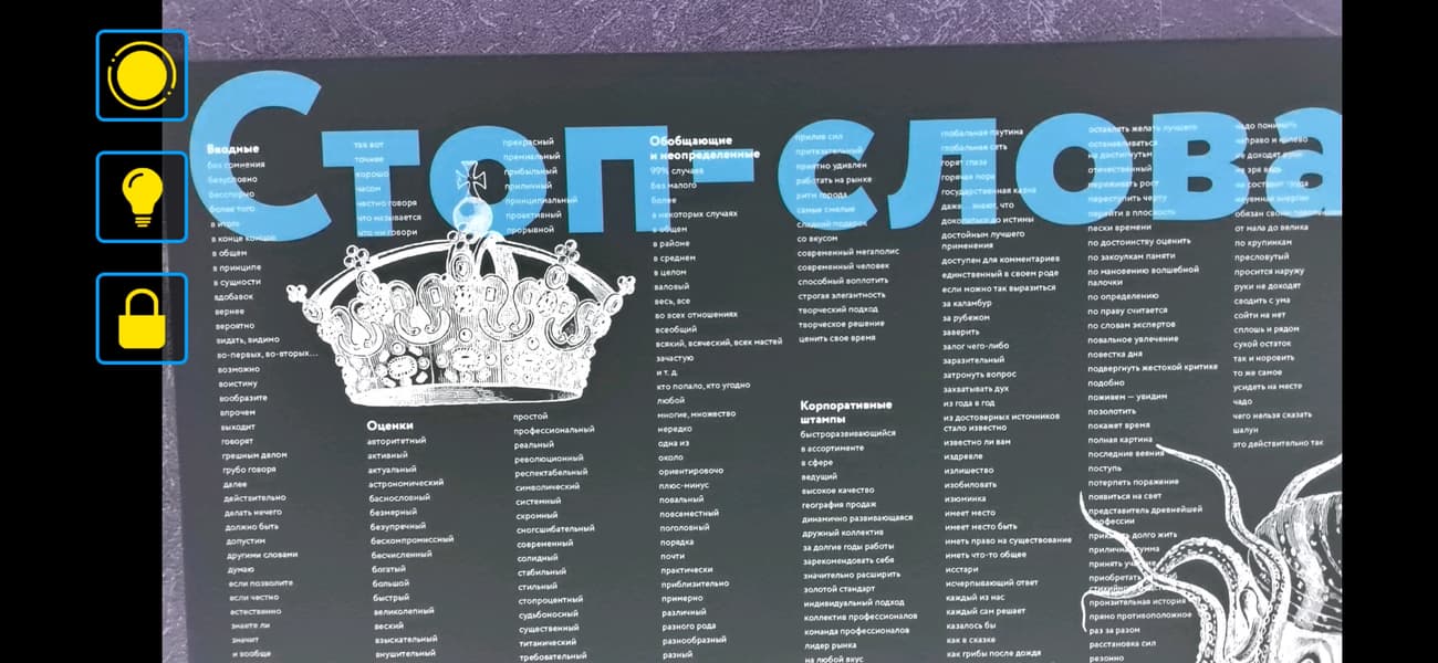 Вторая кнопка — это включение и выключение фонарика для подсветки того же текста.