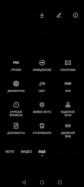 Интерфейс управления камерой стандартен для всех смартфонов Huawei/Honor. Он в целом стал проще, чем раньше, потому что пропала необходимость листания экранов направо-налево. Теперь все элементы настроек разместились в нижнем колесе прокрутки под видоискателем либо ушли в меню под «шестеренкой».