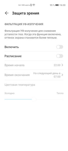 Присутствует модная настройка, позволяющая снизить интенсивность синей компоненты.