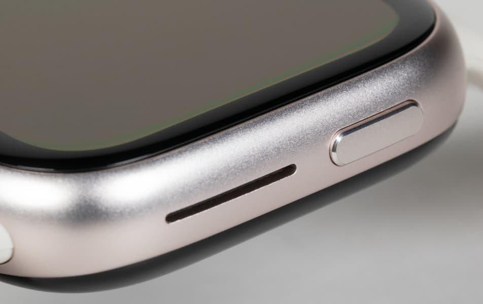 Важная особенность модели — наличие динамика и микрофона для телефонных разговоров. Динамик расположен справа, под продолговатой кнопкой. Микрофон, соответственно, на левой грани.
